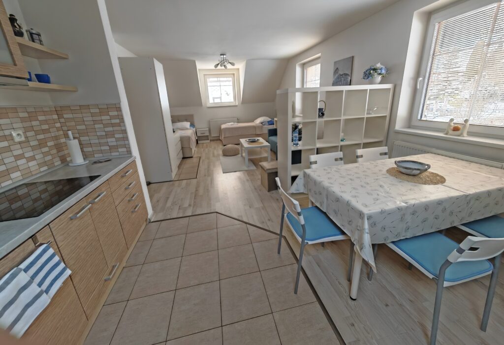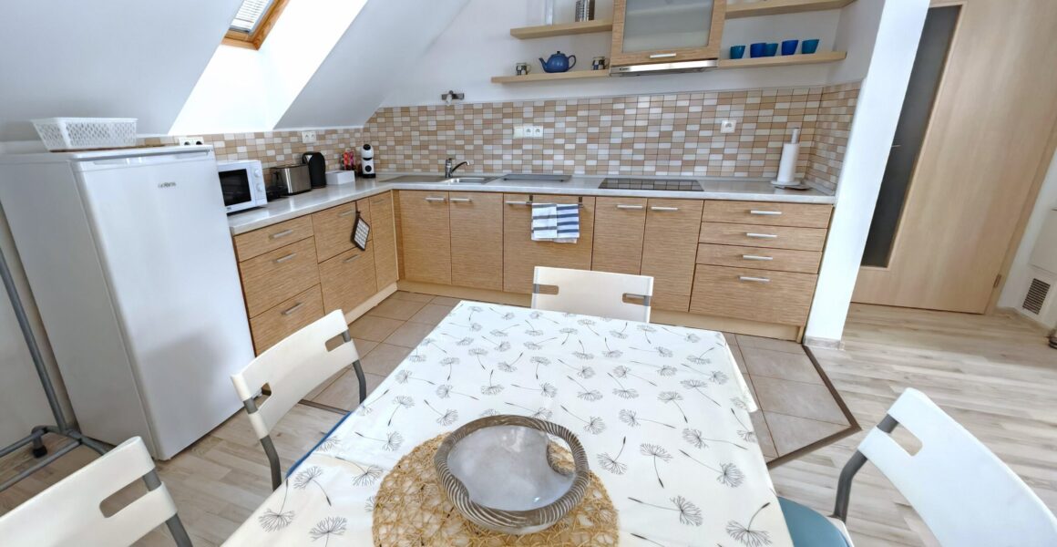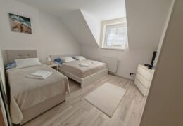 Prostorný a moderní apartmán JIŘÍ o velikosti 2kk s max. kapacitou 5 lůžek o výměře 57 m2. Skládá se z obývacího pokoje (s odpočinkovou a spací zónou) s kuchyňským koutem, ložnice a soc. zařízení.